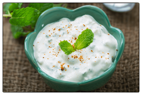 Flavoured yogurt – A highly flavoured yogurt. In India it is served with a biryani.